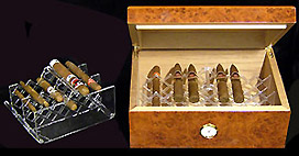 Cigar Aficionado, 09.02.2009A new product from a German company called the Zigarren -!- BelEtage Cigar System may solve both problems. Made of high acrylic glass, the unit comes in various sizes to accommodate different sized humidors and ring gauges. The idea behind the design is that the interlocking rows allow single cigars to “float” inside of the humidor, allowing air to circulate around each stogie. The company claims this will allow the aromas of a cigar to optimally unfold. The units available at the companies Web site, zigarren-beletage.com, cost between $48-$75. One can buy a single unit for the whole humidor, or mix and match smaller units in order to account for larger and smaller ring gauge cigars.